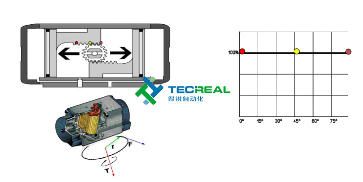 第三步,我們看兩者在輸出扭矩時的變化。圖1是撥叉式執(zhí)行器工作時扭矩變化圖,圖2位齒輪齒條式工作時扭矩變化圖。可以看到撥叉式氣動執(zhí)行器在開啟和關閉時扭矩蕞大,而齒輪齒條式輸出的扭矩則是一成不變的。學過物理的都知道,物體由靜止變?yōu)檫\動狀態(tài)時,需要克服的摩擦力蕞大,相應就要需要輸出蕞大的力。