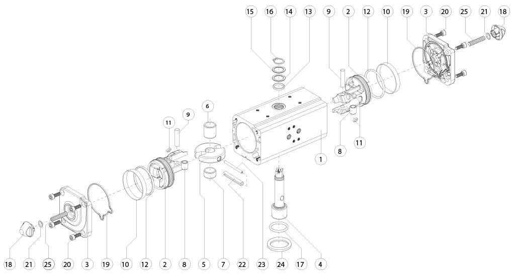 4.滾動摩擦的十字滑塊(通過活塞和無傳動裝置的軸,將線性運動轉(zhuǎn)換為旋轉(zhuǎn)運動)。活塞和傳動軸之間的摩擦力更小,從而減少零部件磨損。打開和關(guān)閉時有著更強的起動扭矩,相較于齒輪和齒條式執(zhí)行器,其尺寸更小,安裝空間需求更低。相較于齒輪和齒條式執(zhí)行器,其重量更小(-30% Kg/Nm),建造基礎(chǔ)設(shè)施時可降低成本。相較于齒輪和齒條式執(zhí)行器,其耗氣量更低,(雙效:-40% 空氣 cm3/Nm;單效:-20% 空氣 cm3/Nm),能夠有效降低壓縮機的工作負(fù)荷,或直接使用小尺寸壓縮機。