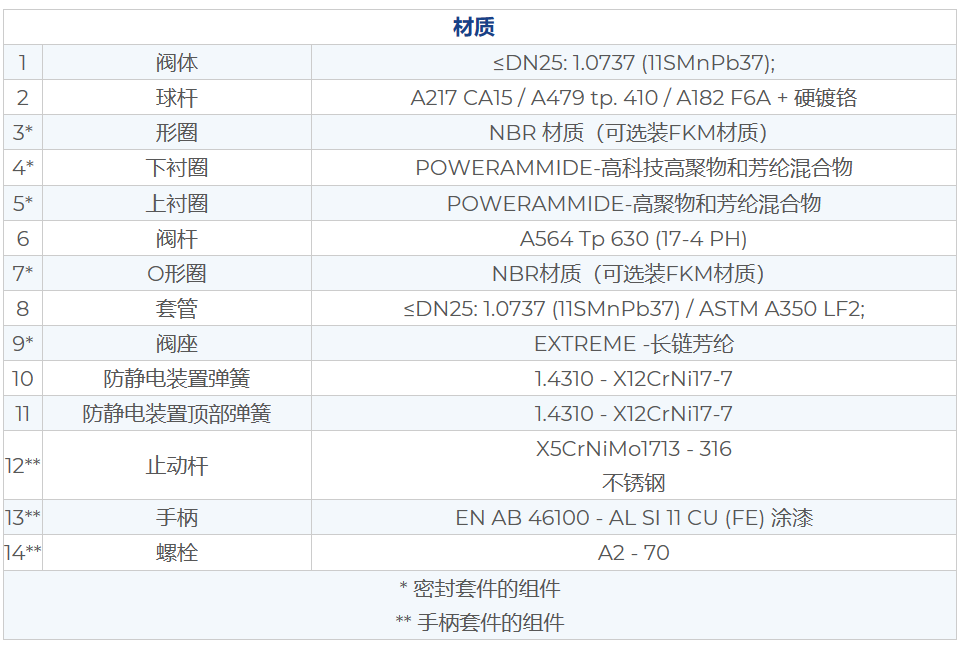 7.抗靜電裝置(球體,莖部與身體之間的電氣連續(xù)性):避免在易燃和/或爆炸性環(huán)境中可能引起著火的靜電電荷。在閥門的整個使用壽命內保證接觸安全。