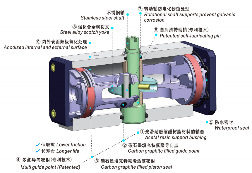 2.撥叉式特殊結(jié)構(gòu),增大輸出力矩,滿足閥門(mén)啟閉時(shí)所需更大力矩的控制特性