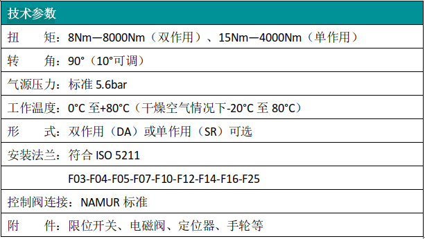 OMAL的標(biāo)準(zhǔn)型氣動(dòng)執(zhí)行器致力于提高節(jié)能、安全性、快速響應(yīng)、輕量化及長(zhǎng)壽命等特點(diǎn),并以撥叉式結(jié)構(gòu)設(shè)計(jì)確保閥門(mén)啟閉時(shí)的強(qiáng)力扭矩和低摩擦低耗損,載荷能力高并對(duì)于負(fù)載驟加有良好的阻抗能力,特別適用于空間有限,有大量使用需要場(chǎng)所的應(yīng)用。有雙作用式和單作用式(彈簧復(fù)位)。