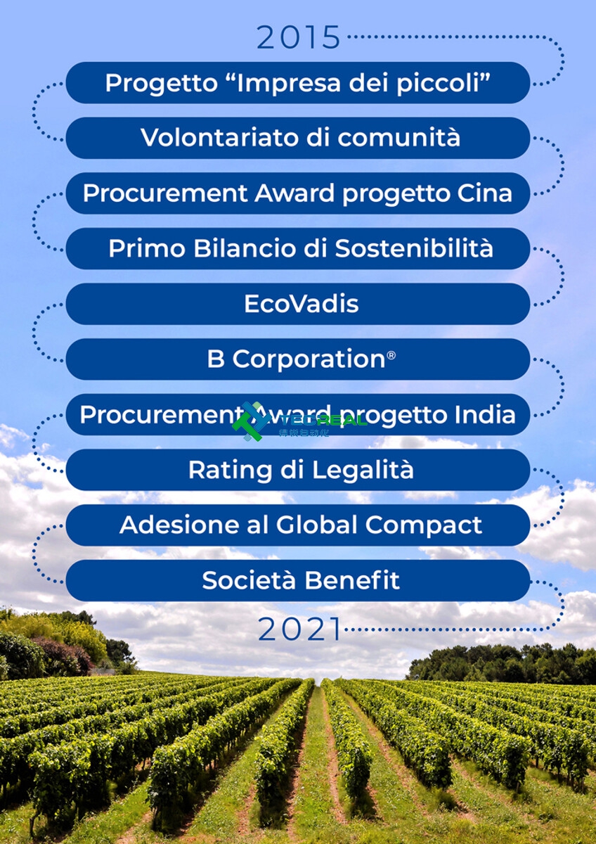 從那時起,我們繼續(xù)建立和鞏固我們的組織,并通過創(chuàng)新驅(qū)動力圍繞這些主題管理我們的運營。但我們并沒有停止,為了給我們在我們領(lǐng)土上的承諾提供更大的力量和普遍性,我們在 2018 年成為意大利全球契約網(wǎng)絡(luò)的創(chuàng)始成員。今天,作為一家福利公司,完成了一個雄心勃勃且重要的項目,這是我們企業(yè)愿景的基礎(chǔ),即在人與環(huán)境之間找到適當(dāng)?shù)钠胶?,提高生活質(zhì)量,并為子孫后代保證一個更美好的世界。