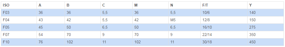 | (**):閥門沒有符合ISO F04的連接口 |