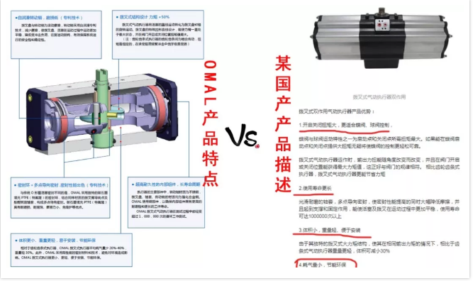 就是這樣一個(gè)改變氣動(dòng)執(zhí)行器結(jié)構(gòu)的國際知名品牌,在如今,也面臨著同樣“被致敬”的尷尬局面。更有甚至,不僅連外形和結(jié)構(gòu)山寨,連宣傳文字的產(chǎn)品特點(diǎn)都一模一樣的去復(fù)制。