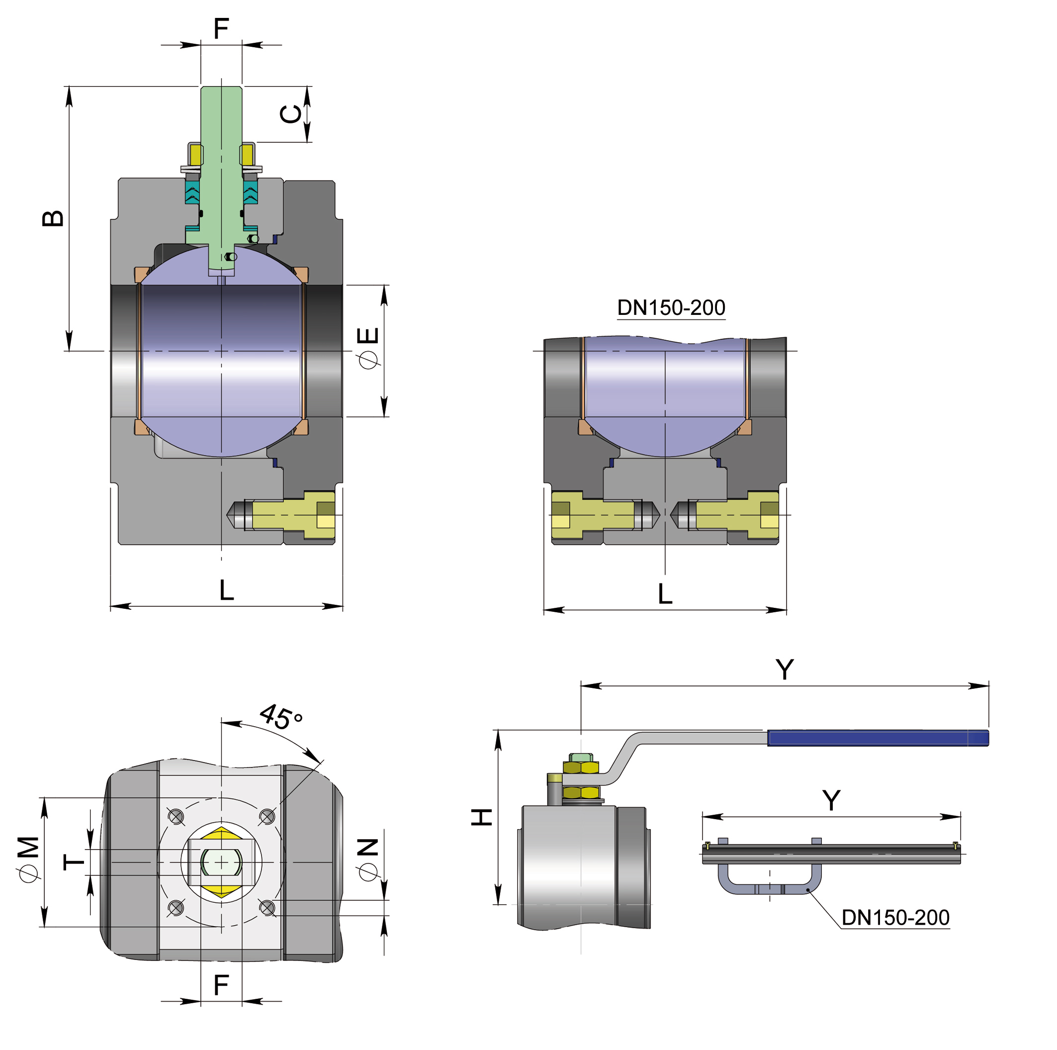與執(zhí)行器連接孔符合ISO5211標(biāo)準(zhǔn)