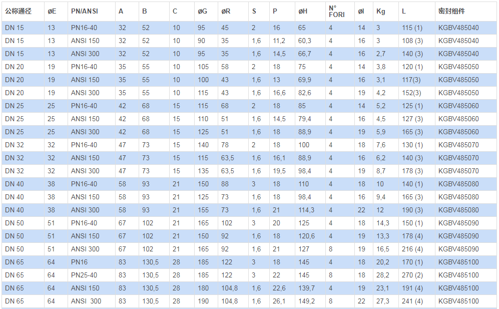 密封材料:PTFE加玻璃(RPTFE-GF),PTFE加碳石墨(RPTFE-CF)。如需其它密封材料,請與我們的銷售部門聯(lián)系。